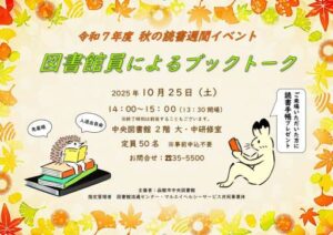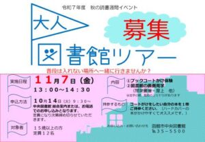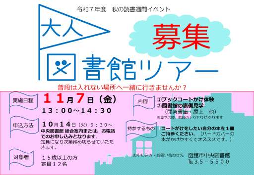 申込:10月1日(水)13時から、旭岡図書室のカウンター、および電話にて受付