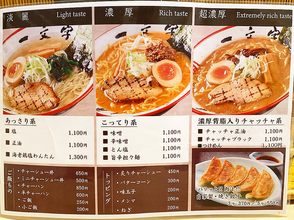 ![]() というわけで 函館市湯川町にある 『一文字 総本店』さんです。 お店のホームページはコチラ。 お店のInstagramはコチラ。 お店の場所はコチラ。 初めての訪問はコチラ(チャーハン)。 2度目の訪問はコチラ(チャッチャ正油)。 3度目の訪問はコチラ(チャッチャ正油)。 営業時間は11:00~23:00、 定休日は水曜日&不定休、 駐車場はお店の前と横です。 ![]() ![]() ラーメン&ライスが食べたくなったので 湯川にある『一文字 総本店』さんへ。 花園店ではなく総本店ってのが こだわりですよね。 総本店は観光客も多いから 凄く混む店舗だけど 「あえて」っていう。 ![]() 『一文字 総本店』 ■チャッチャ正油 1100円 ■ご飯 250円 「超濃厚」と書かれたセクションから 「チャッチャ正油」をいただきマンモス。 パートナーにはいつもの通り 白米を選抜しておきます。 ![]() トッピングはチャーシュー、メンマ、 きくらげ、ハーフ煮卵、のり、刻みネギ。 背脂のたっぷり浮かぶとんこつ系 こってり醤油ラーメン。 スーパー美味しい! メチャクチャ美味いやんけワレ。 これは人気店なワケだと 即座に思いましたねぇ。 ![]() 濃いめのスープに食べ応えのある麺、 柔らかなチャーシューにメンマ、 きくらげ、煮玉子と どれもがライスに合う! こんなにライスに合うラーメンは 函館で他に無いんじゃないだろうか。 ライスが驚くほど大きなお椀で登場し ぶっちゃけドンブリ飯サイズだったんだけど マジであっという間にペロリでした。 ラーメンライスが食べたくなったら1番に来よう。 |