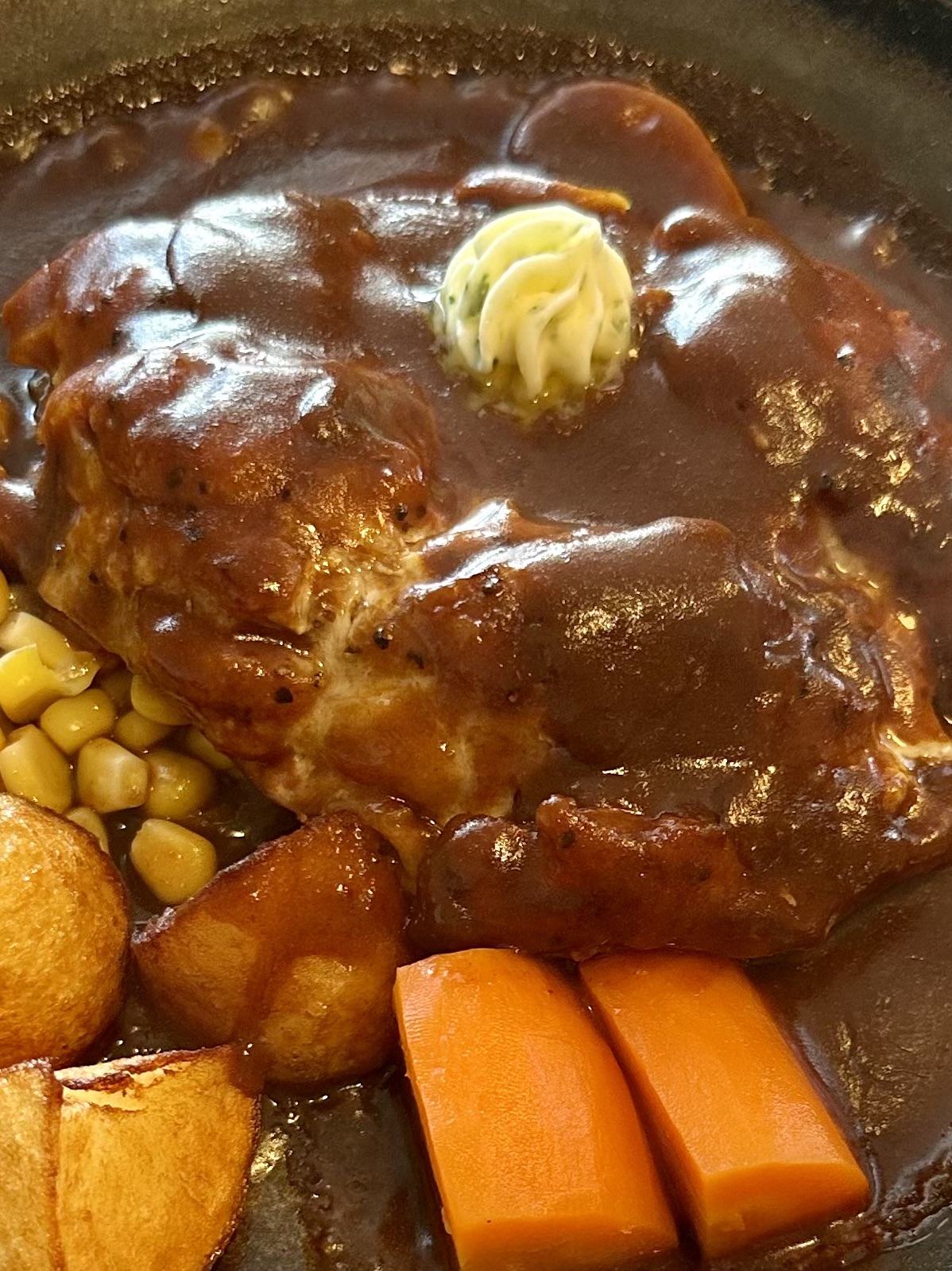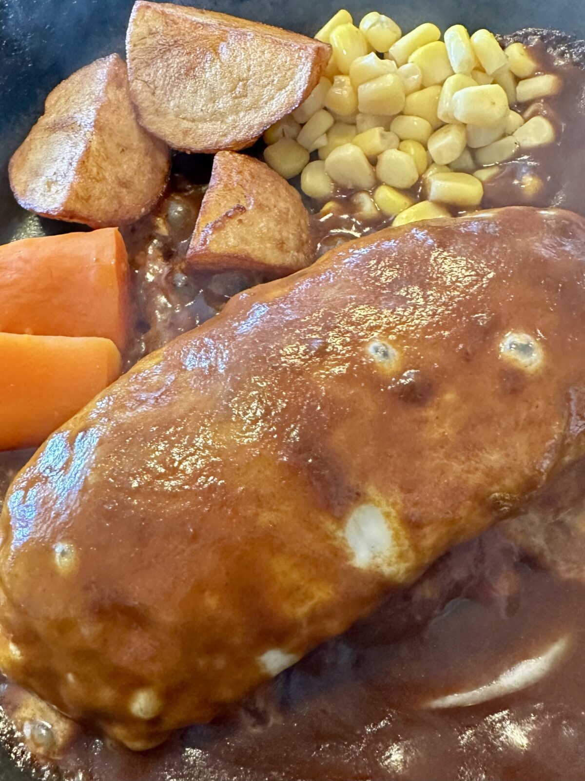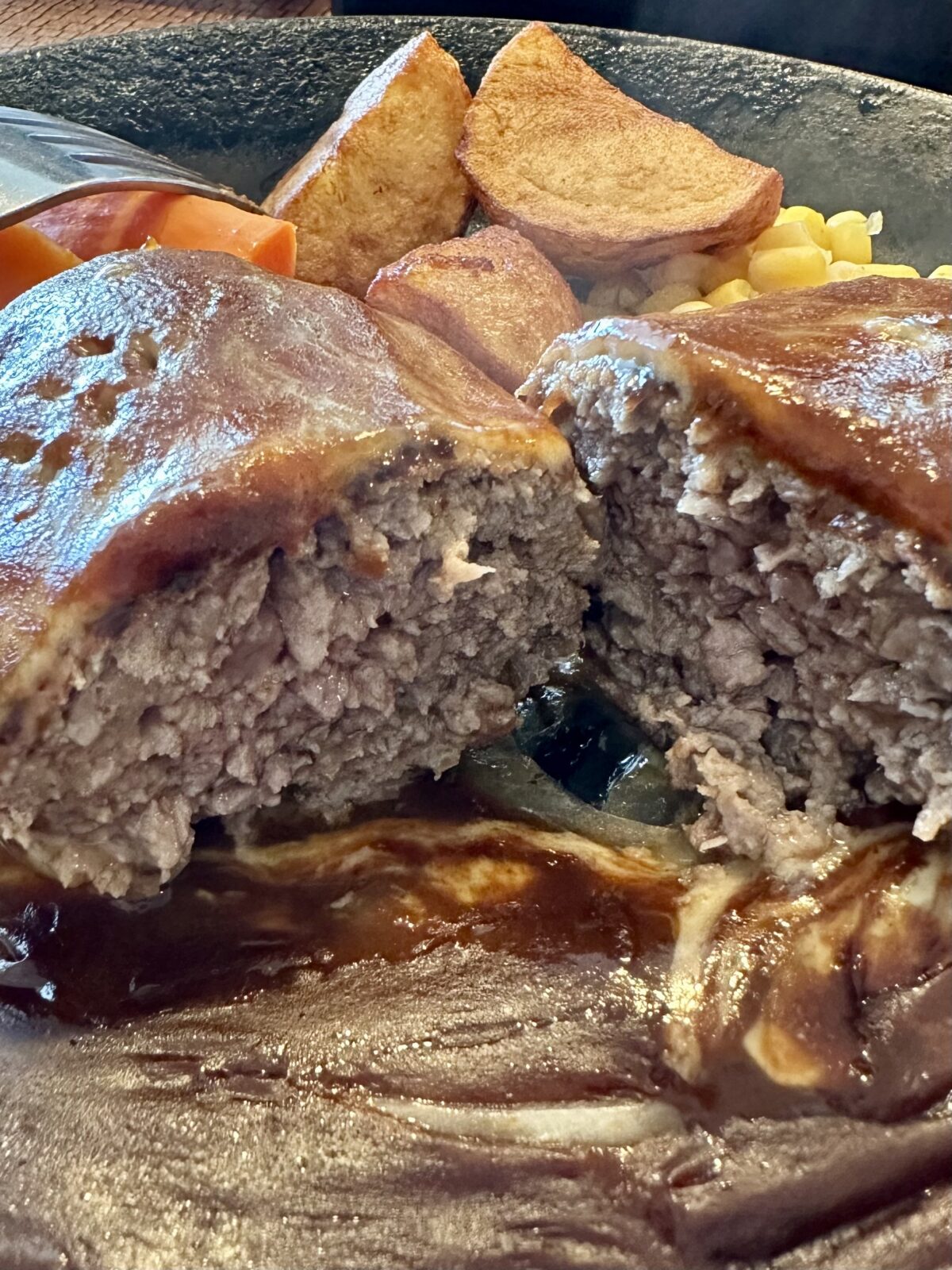歯ごたえがありしっかりお肉の食感があるハンバーグ