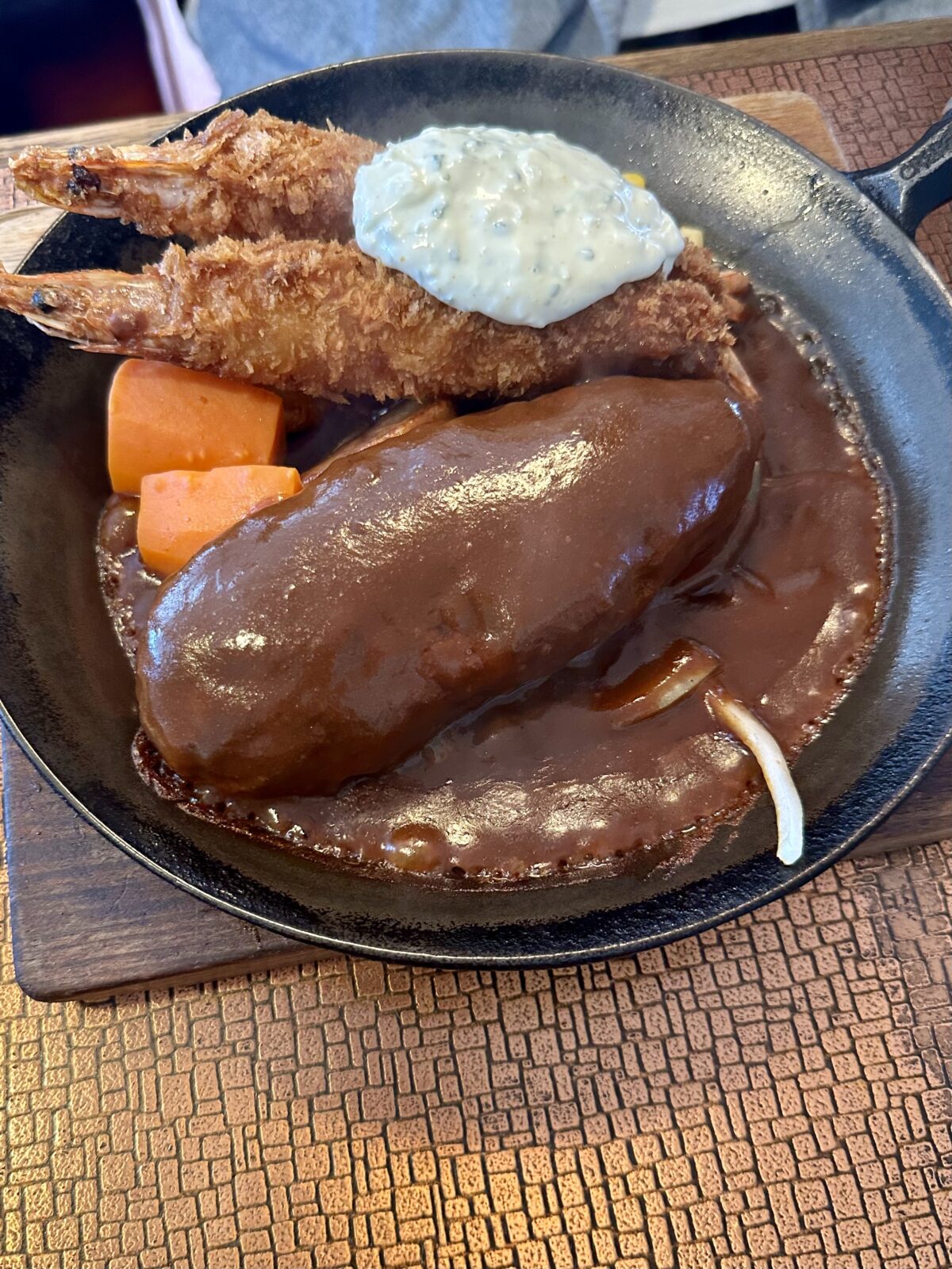 やや甘めのデミソースは子供から大人までみんなが好きな味でご飯がススム