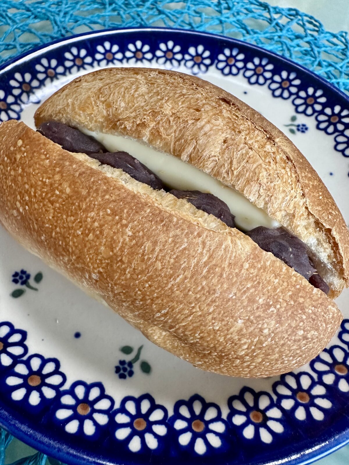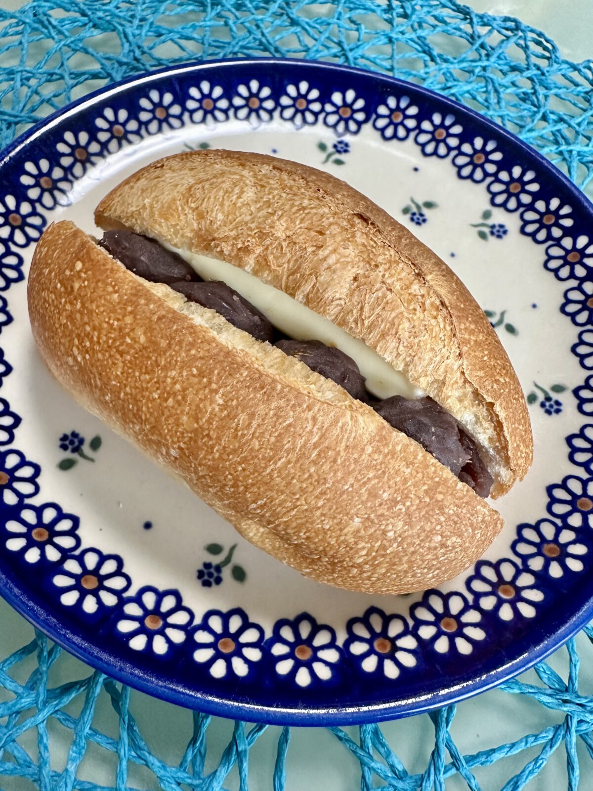 たっぷりのこしあんとたっぷりのバターがややハード系のパンよく合い美味しい!
