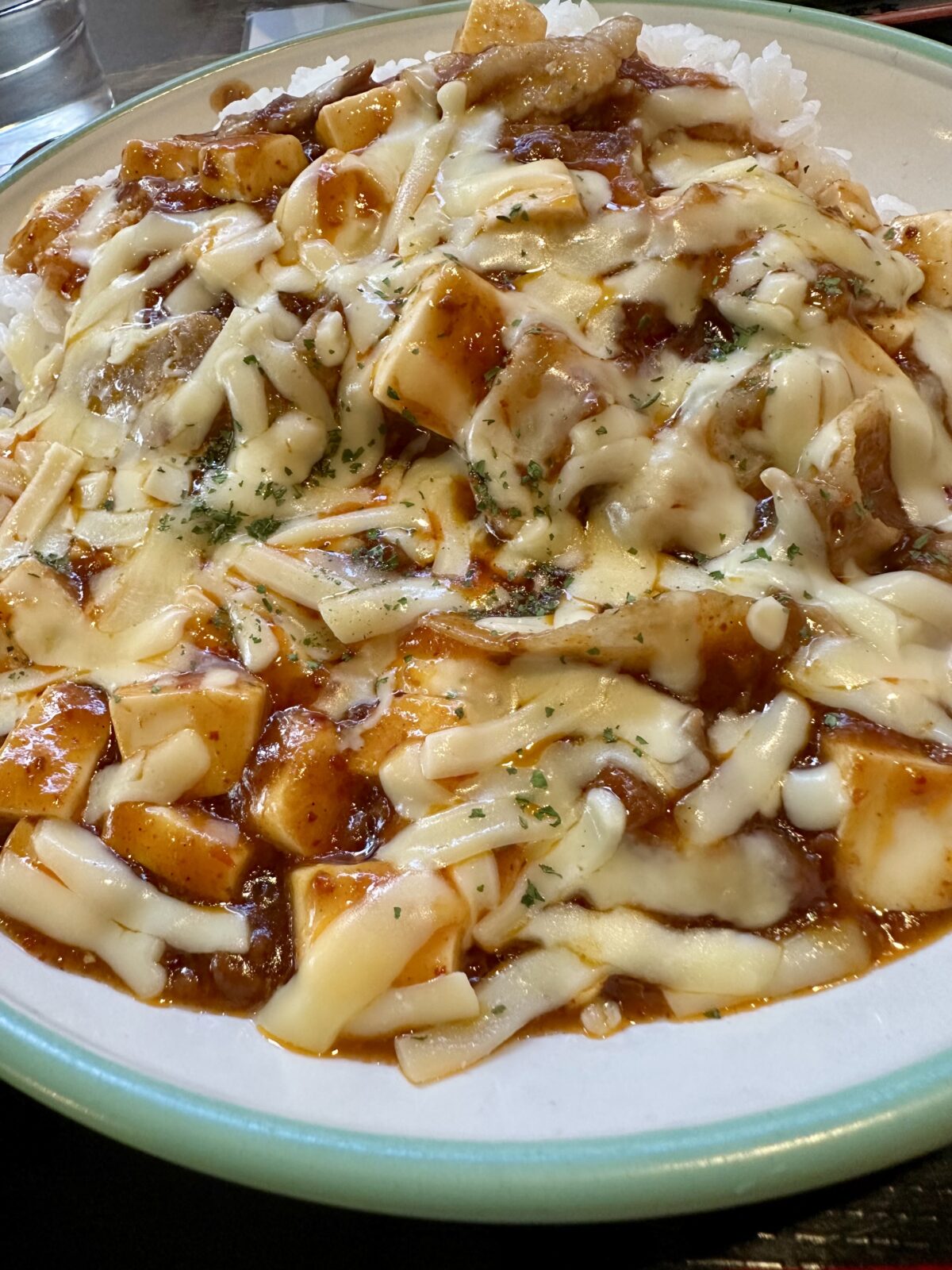 ごはんの上にはたっぷりのマーボーとチーズが!