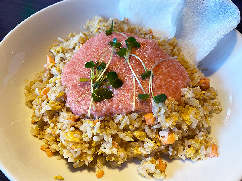 コチラ(炭焼きチキンのガーリックバターピラフ)。
