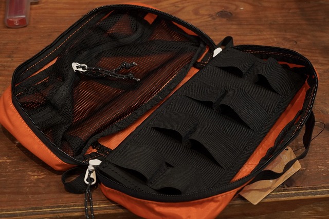 また、外側面には大きなメッシュポケットがあるので、ちょっとしたカギや、グローブを入れておくのに重宝します。