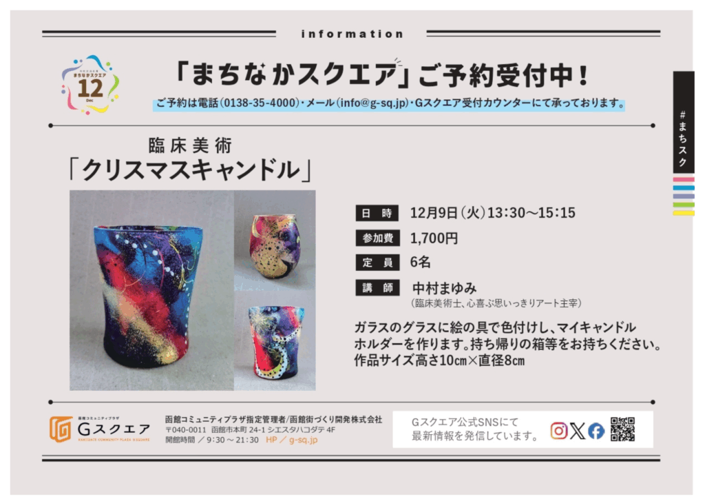 本年も一年を通して、函館コミュニティプラザGスクエアをご利用・応援いただき、誠にありがとうございました。
